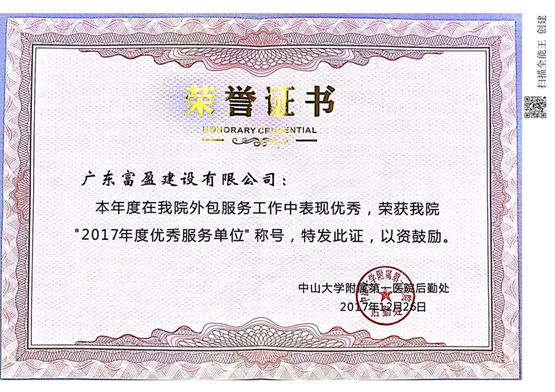 中山大學優秀服務證書