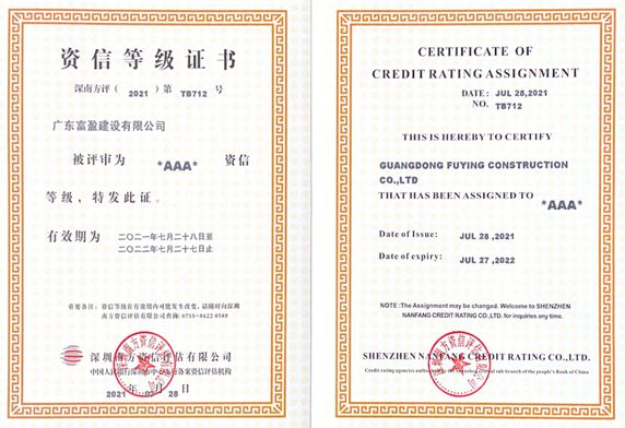 資信等級證書AAA級
