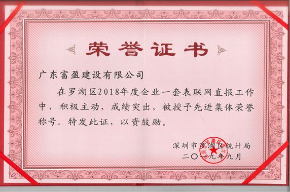 深圳羅湖區統計局頒發(2018年度企業一套表聯網直報)