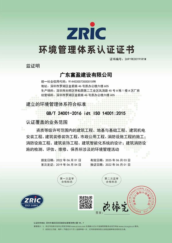 環境管理體系認證證書